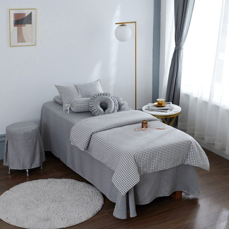 Four-piece set Houndstooth powder Light grey four-piece set Houndstooth grey Dark grey four-piece set Houndstooth powder Pink matching color Lying pillow matching color Footrest matching color Large pillow matching color Dirty quilt cover