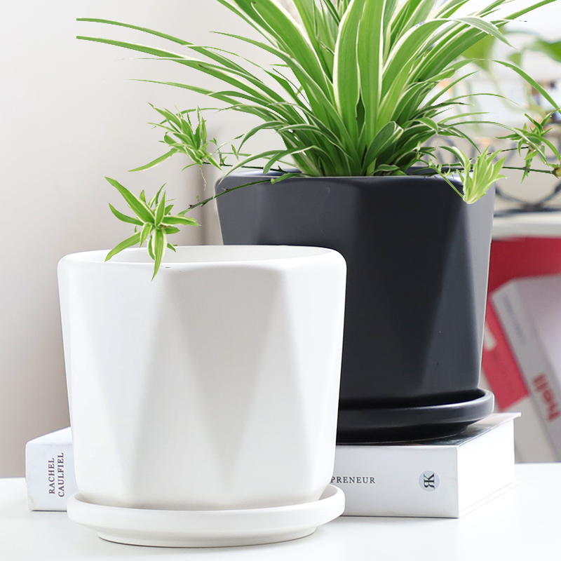 Flower pots Ceramic white minimalist light Black Ribbon Nursery Nordic Style Creative Gold Gross Green Plant Large number of small flower pots