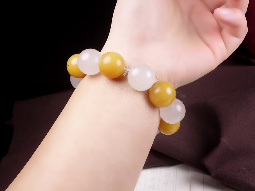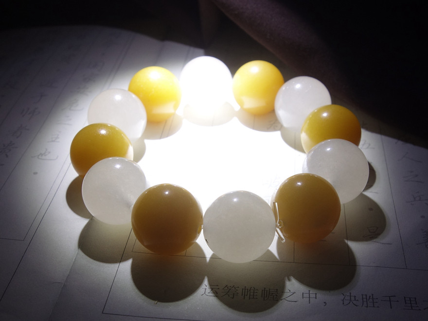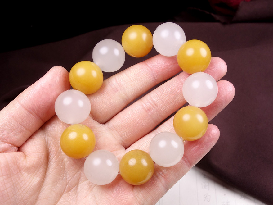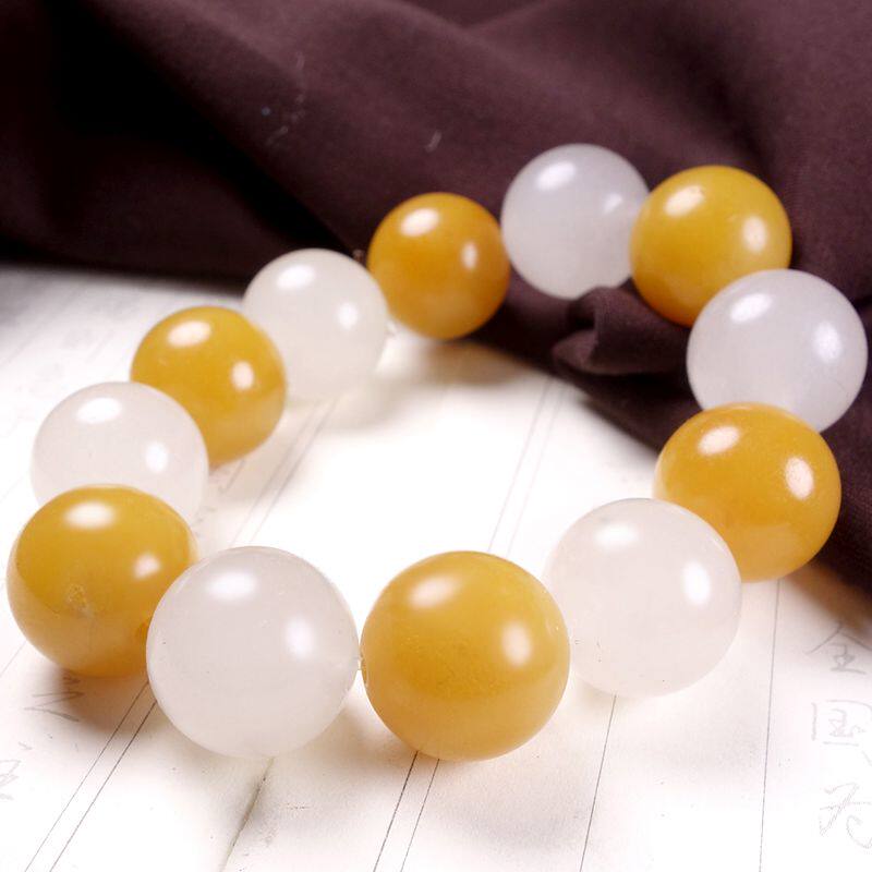 Yellow and white big! Yunnan Longling Huanglongyu "Ice Qing Yu Jie" bracelet hz00831