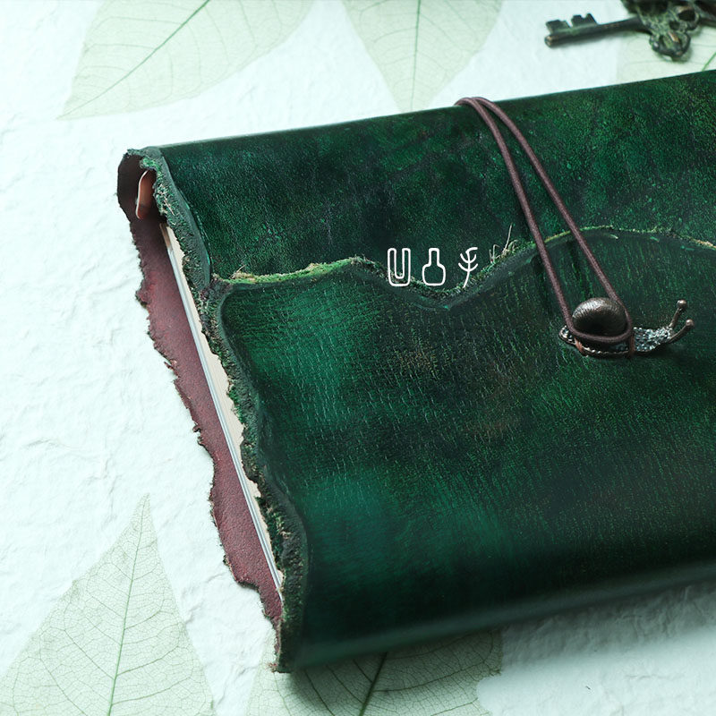 Snails a5 loose-leaf genuine leather notepad notepad green retro handmade day remember pure handmade gift