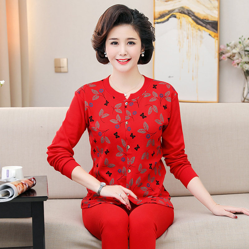Winter middle-aged and elderly cotton cardigan heat jacket cotton cotton cardigan home wear autumn clothes sanitary pants pajama pants set