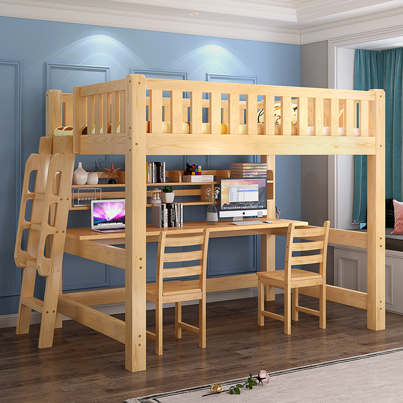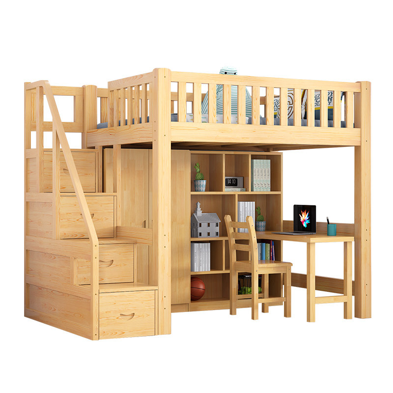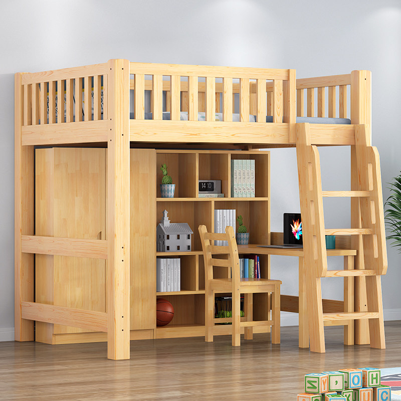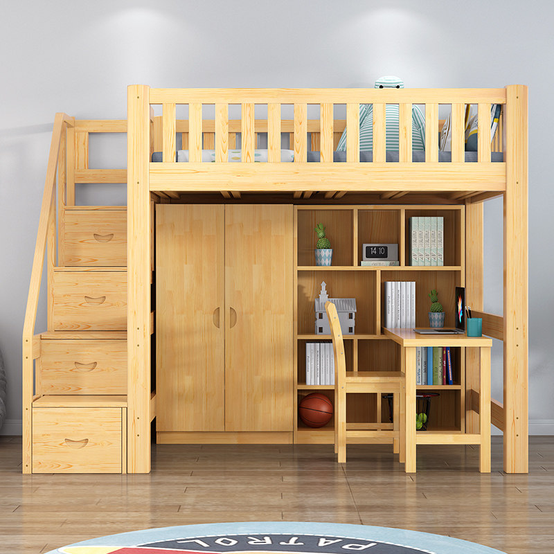 Upper Bed Lower Table Multifunction Composition Small Family Type Province Space Children's Bed Solid Wood Terraced Closet Wardrobe Bed Straight Ladder Elevated Bed
