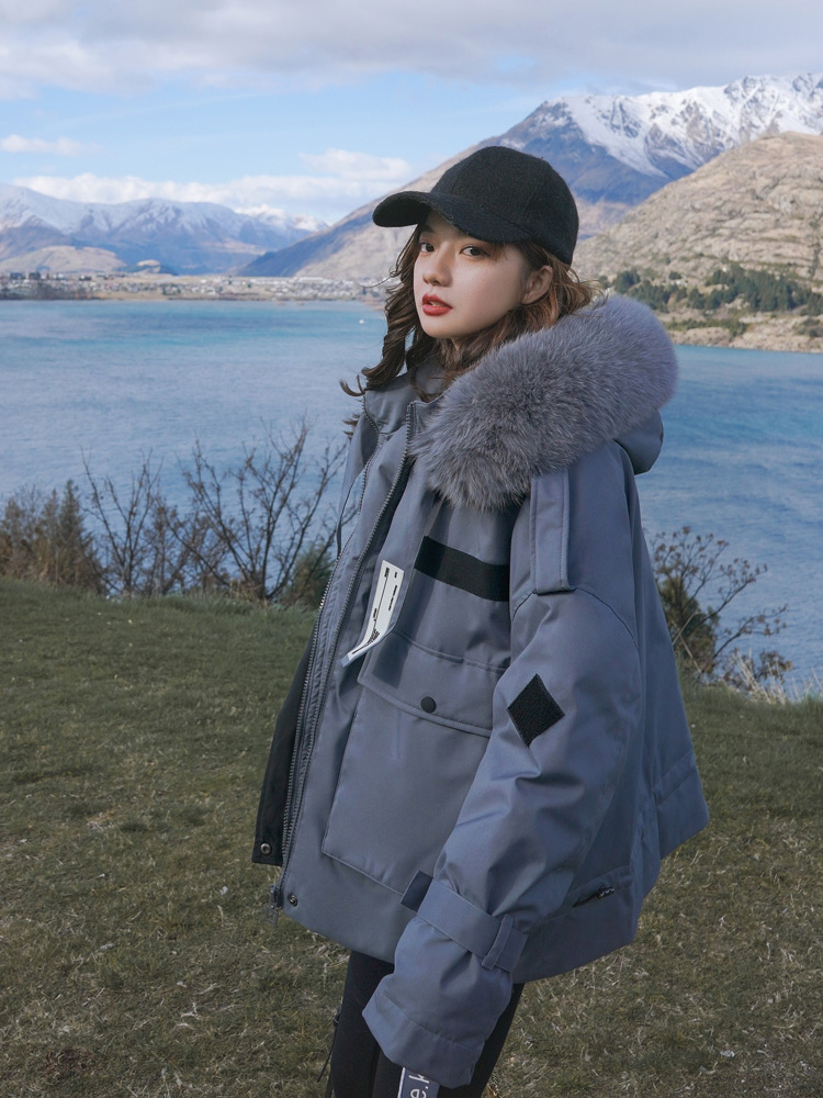 Lecea Alice Cotton Clothing Cotton Suit Women 2022 Winter New Thickening Tooling Hair Collar Pie Overcomes Short jacket