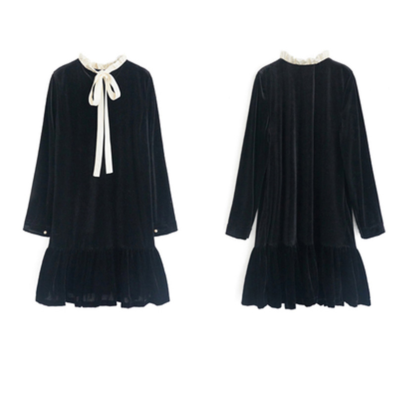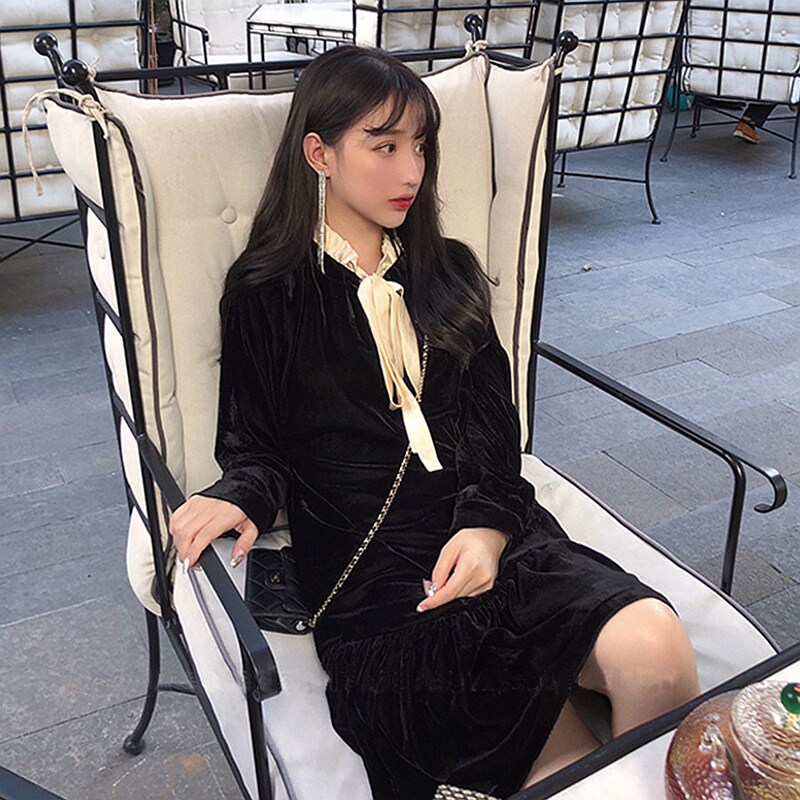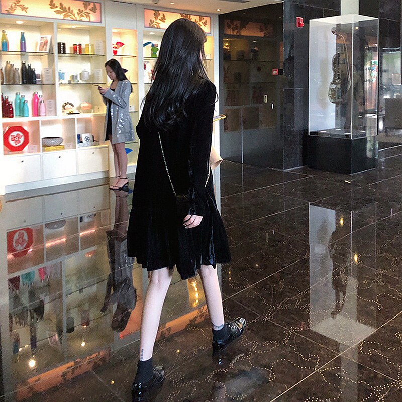 French velvet dress short with coat skirt temperament bottoming skirt women's autumn and winter small body with a little black skirt
