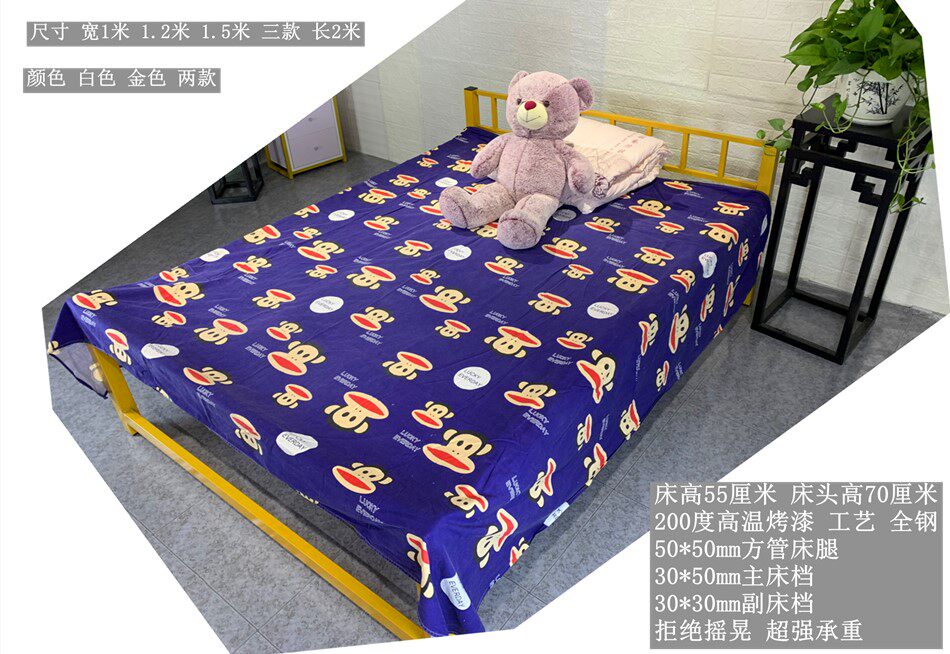 Modern Economy Type Iron Art Metal Minimalist Student Single Double Bed Guardrails Bed Frame Bed Frame Golden White