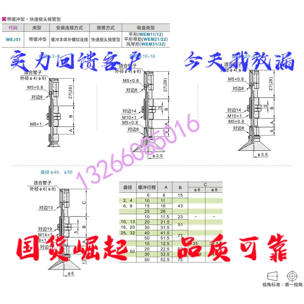 The Yiheda vacuum suction cup WEJ51-d10-d13-d16-d20-d25-d2-WEM11-12-J-10-6-4