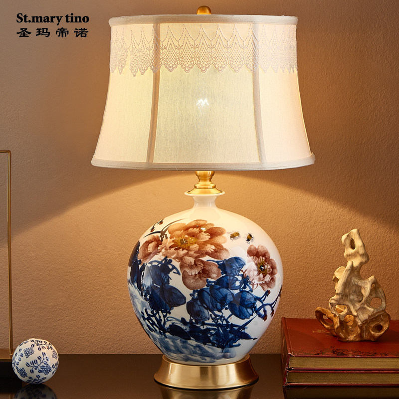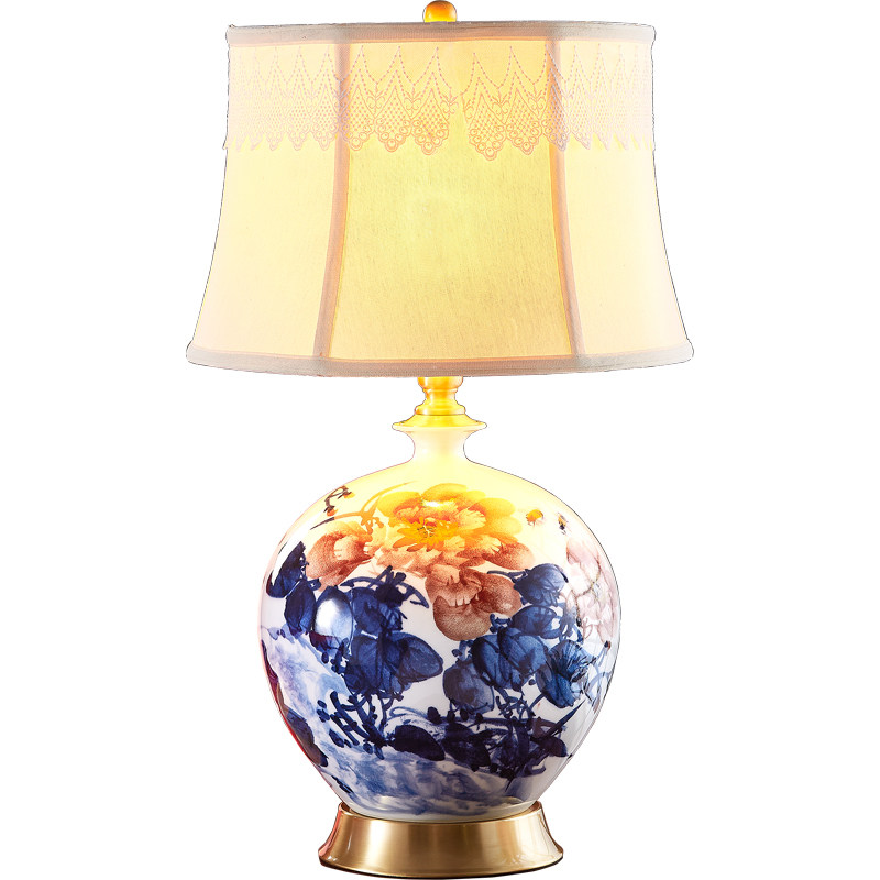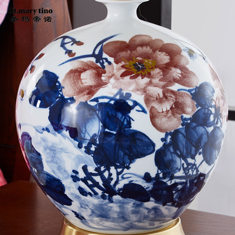 Wedding table lamp wedding room bedside lamp w bedroom red new Chinese ceramic bride dowry gift a pair ◆ new product