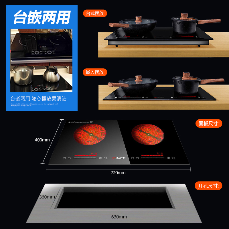 Champenthouse Home Kitchen Apartment Bench Inlaid Embedded Wise Energy Saving electric Tao Group Eye-eye Induction Cooktop induction cookware