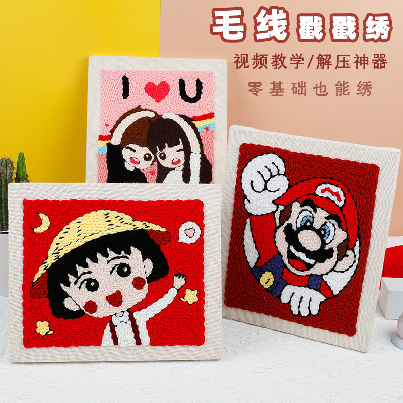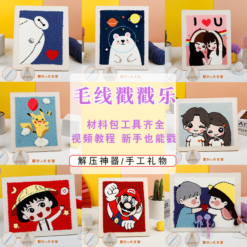 Russian Poke Poke Embroidered Hand Embroidered Diy Hair Line Drawing Lovers Embroidered Sheep Felt Poke Embroidered Material Contains Tutorial