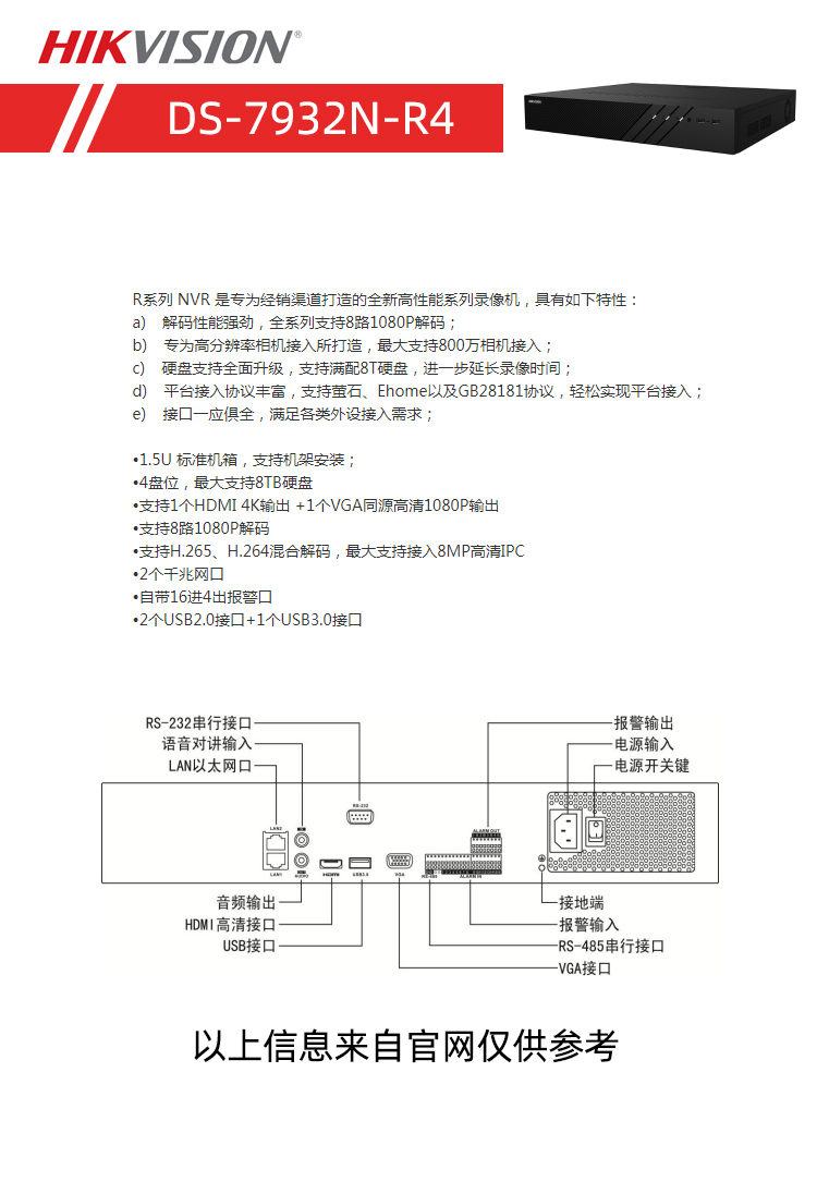 SeaConway view 8-way 16-way 32-way 4 disc position Internet hard disc recorders DS-7932N-R47916N-R4