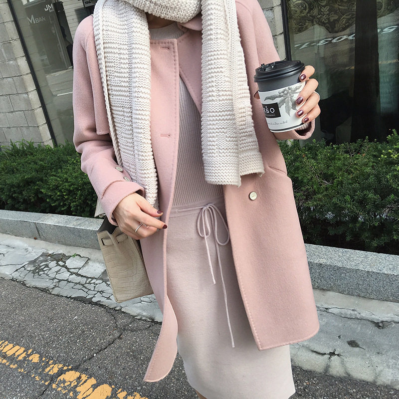 Pink Cashmere Big Coat Woman Autumn Winter Style Fashion Foreign Pie Dressing Up Slim Retro Thickening Fur Coats