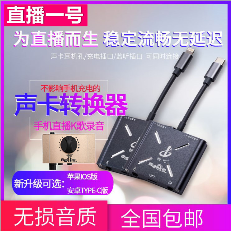 Chang ba live broadcast No.1 internal and external sound card converter compatible with apple Android Huawei mobile phone universal connection wheat PK charging live broadcast No.1 type-c adapter recording karaoke equipment