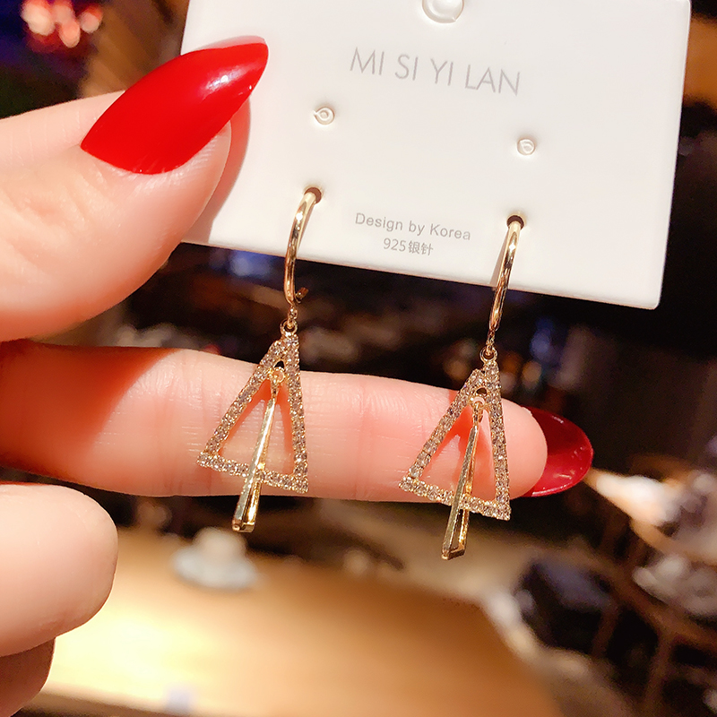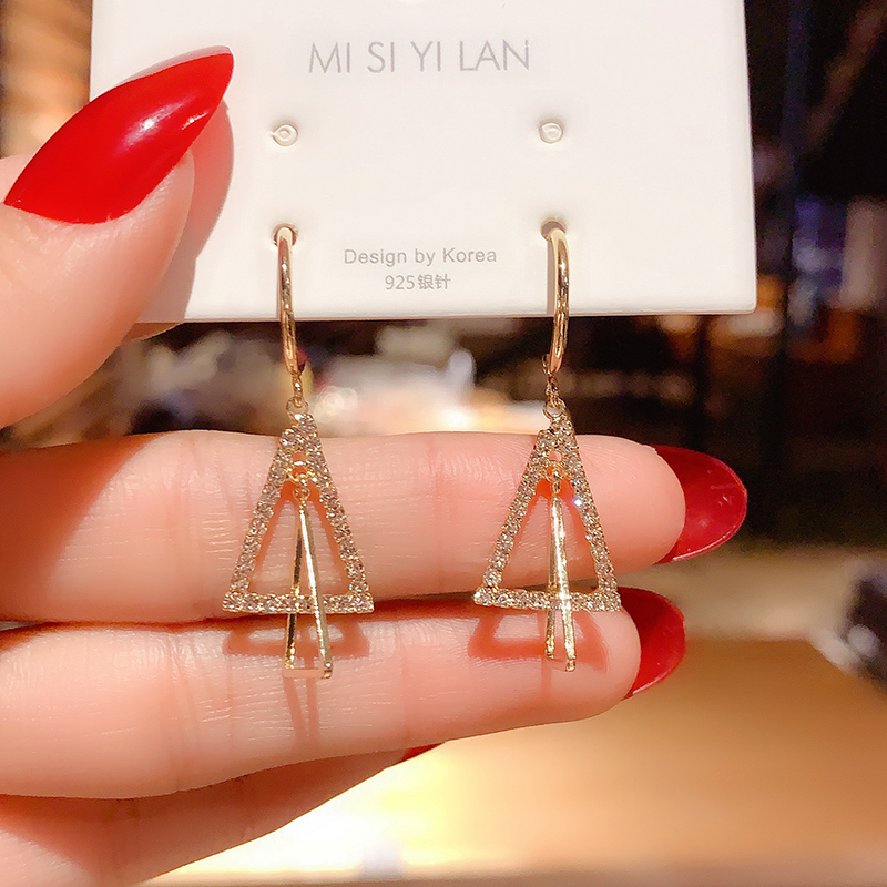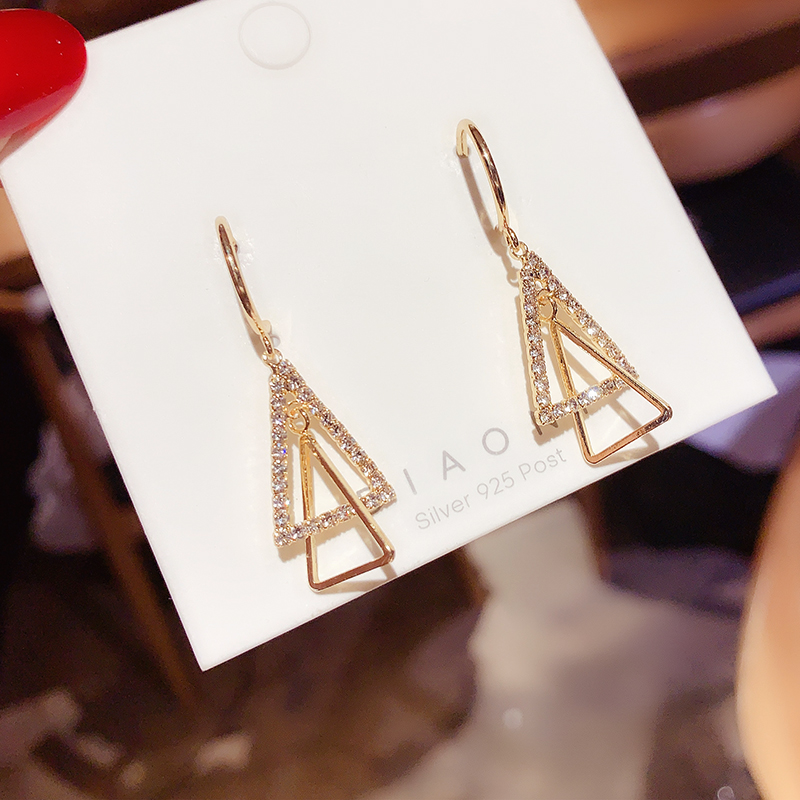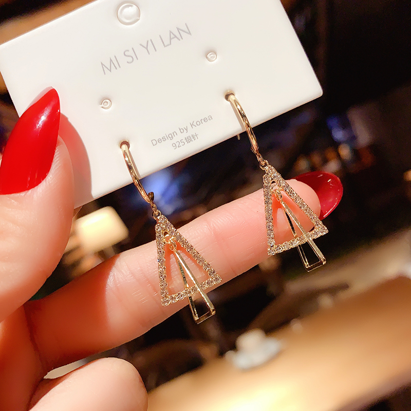 Korean niche design sense full of diamond triangle earrings temperament fashion all-match earhook earrings earrings female silver needle earrings earrings