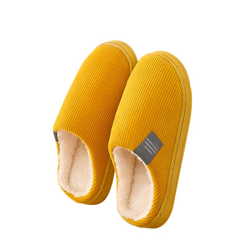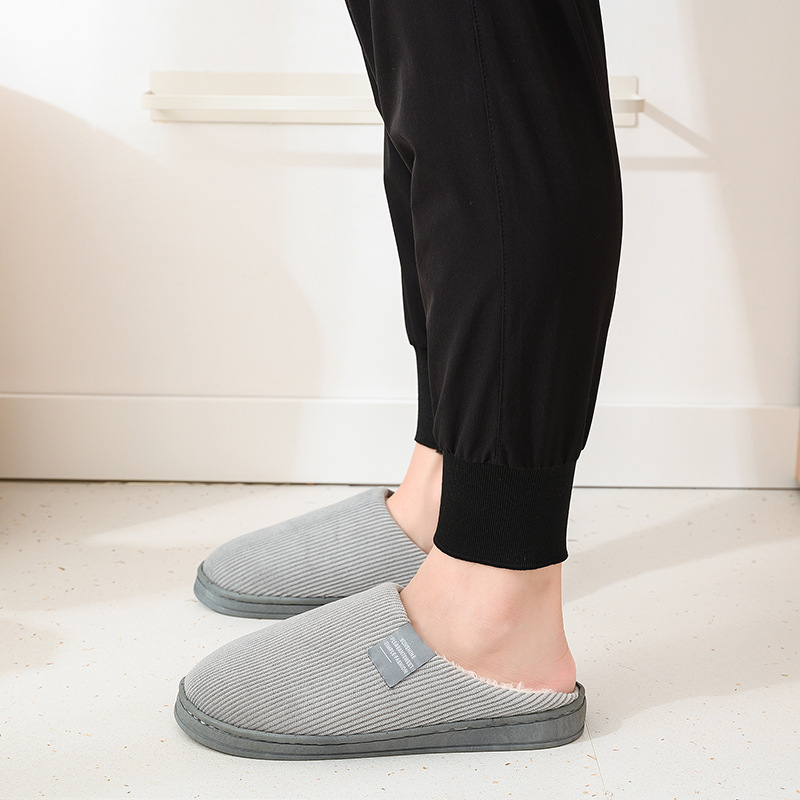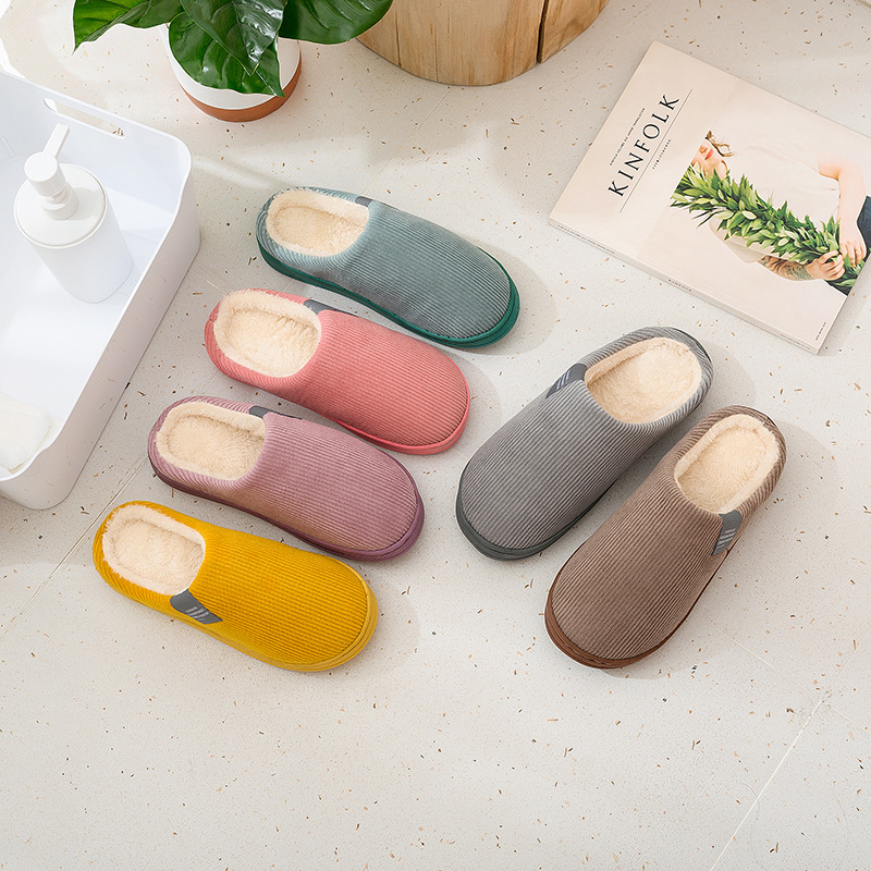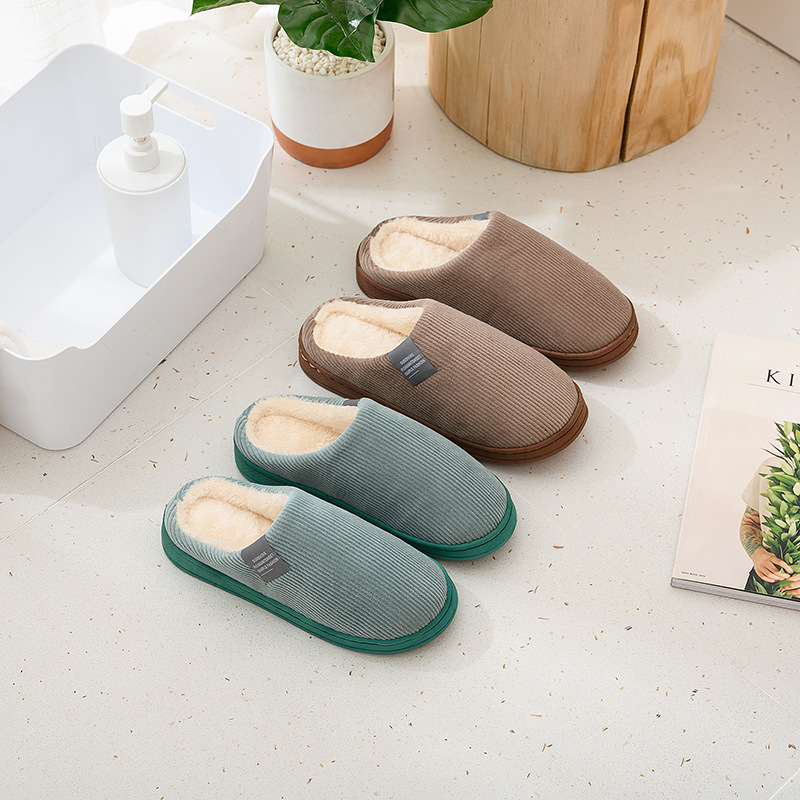 Simple winter cotton slippers for men and women couples indoor warm thick bottom wear-resistant non-slip home flat bottom plush solid color