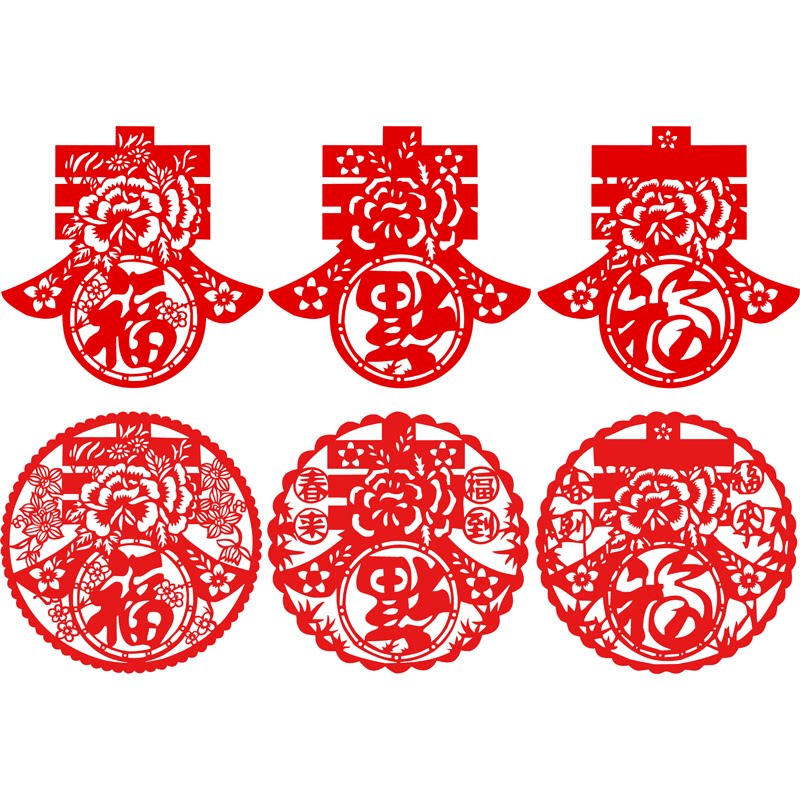 Traditional paper cut paper window flower Spring Festival New Year's New Year Fucalligraphy and doors and windows glass hollowed-out bull year large red sticker decoration painting