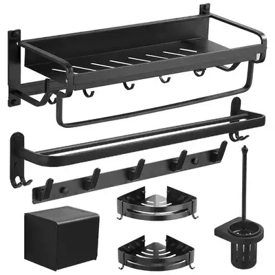 Powder room bath towel rack non-perforated bathroom net basket wall hanging toilet black clothes basket towel rack bathroom rack