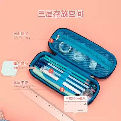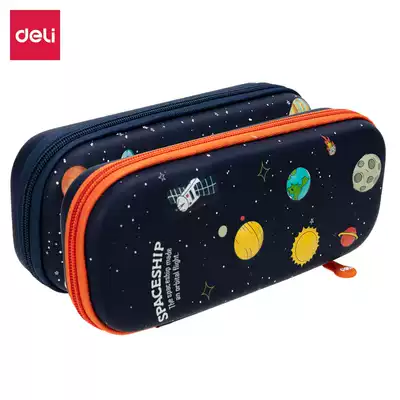 Del 67093 pen bag male stationery bag pupils cute large capacity children cartoon pencil box simple double layer kindergarten Primary School first grade multifunctional students with boy pen box