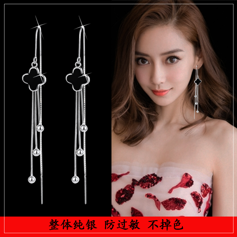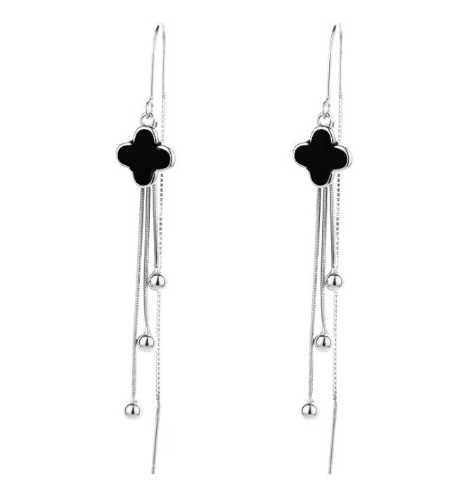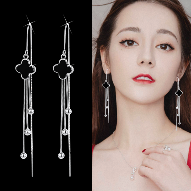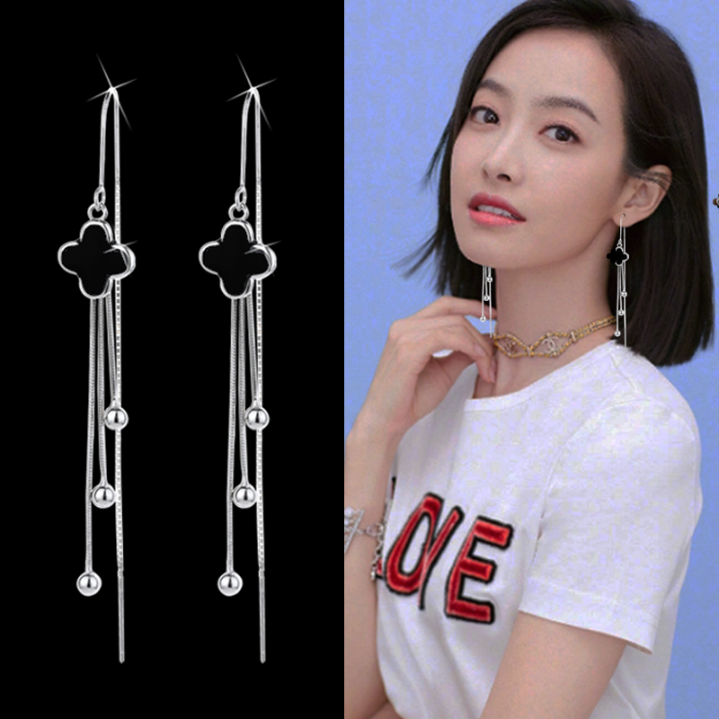 High-quality four-leaf clover earrings 2022 new tide fairy temperament simple forest super fairy face thin sterling silver earrings
