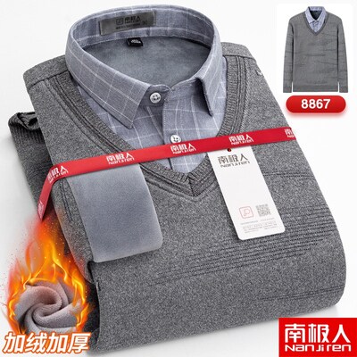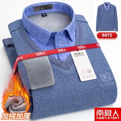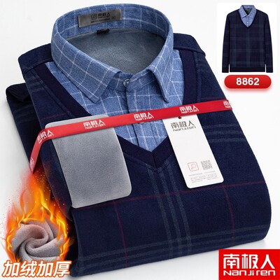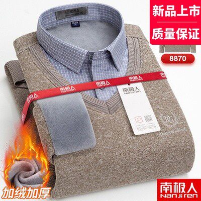 Nanjiren winter men's thermal underwear plus velvet thick fake two-piece collar shirt T-shirt middle-aged and elderly dad outfit