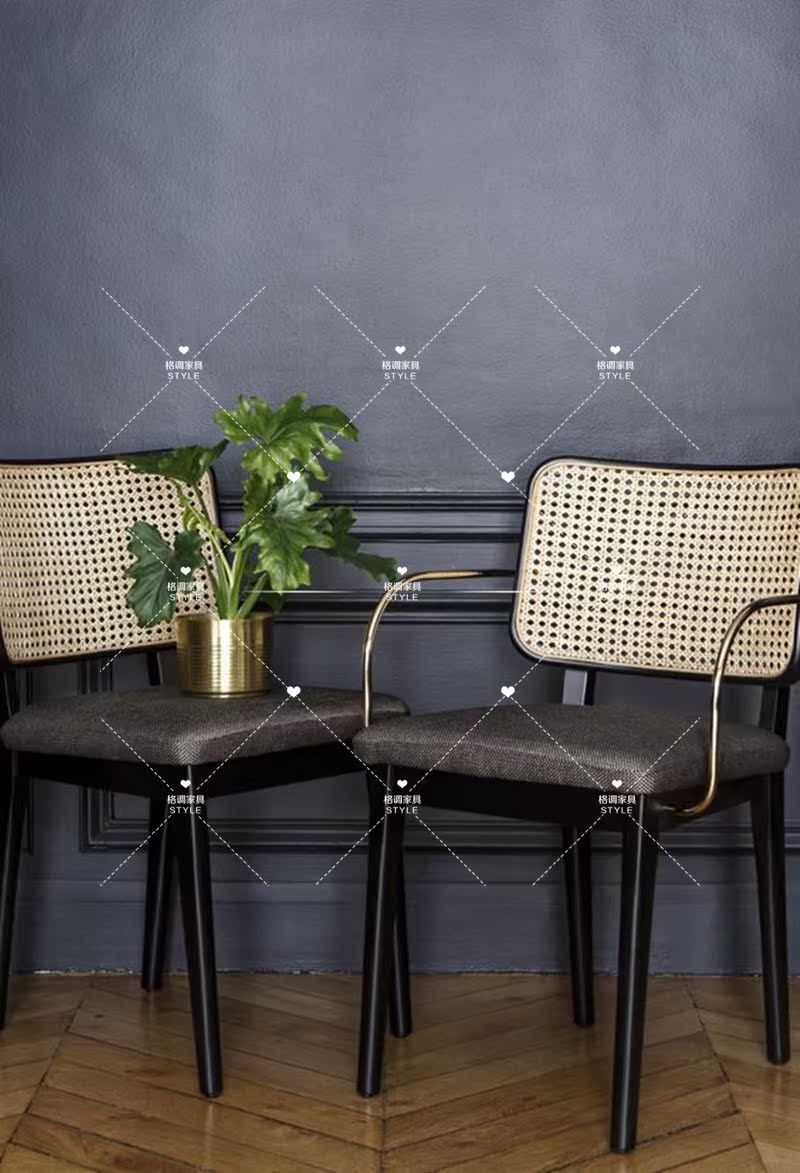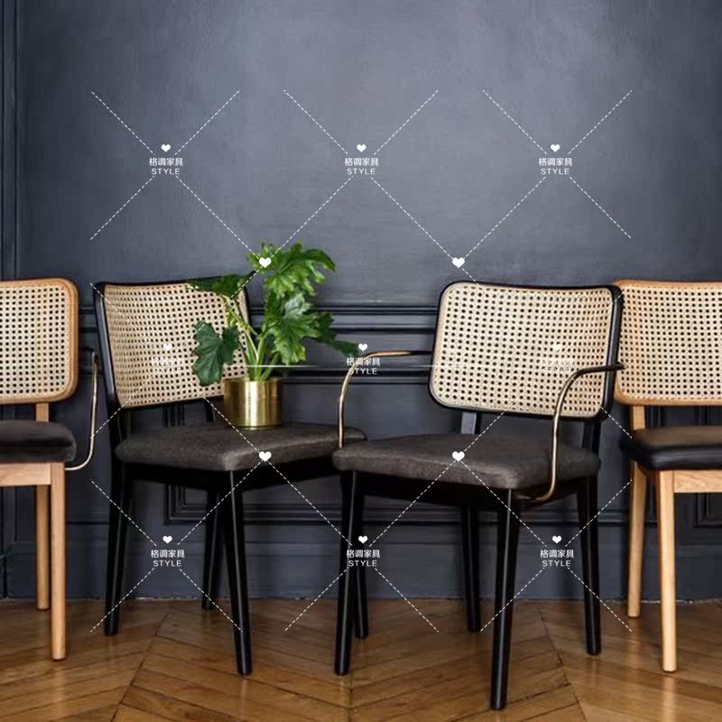 Nordic retro solid wood metal household rattan dining room chair designer fashion leather fabric soft bag leisure reception chair