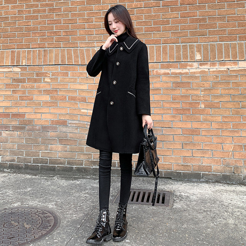 Hepburn windbreaker women's long version of the 2021 autumn and winter new loose coat small black wool coat