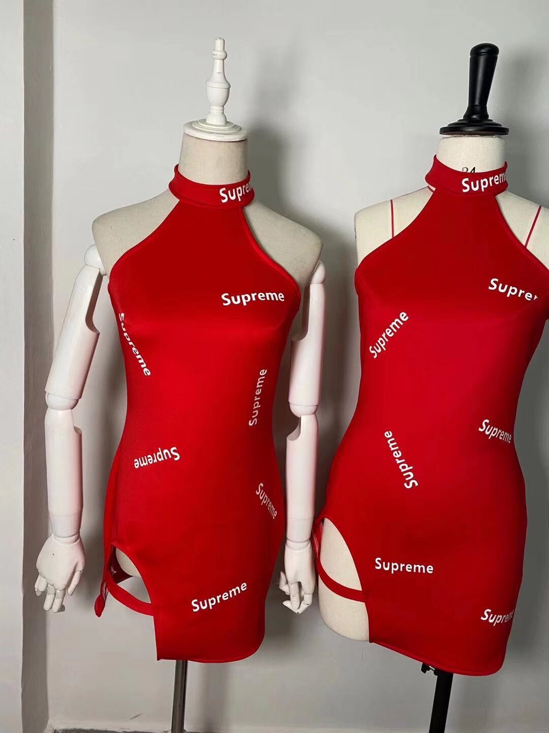 Bar dagogo Christmas New Year's Day New Year's performance costume red cheongsam dress split neck tight skirt