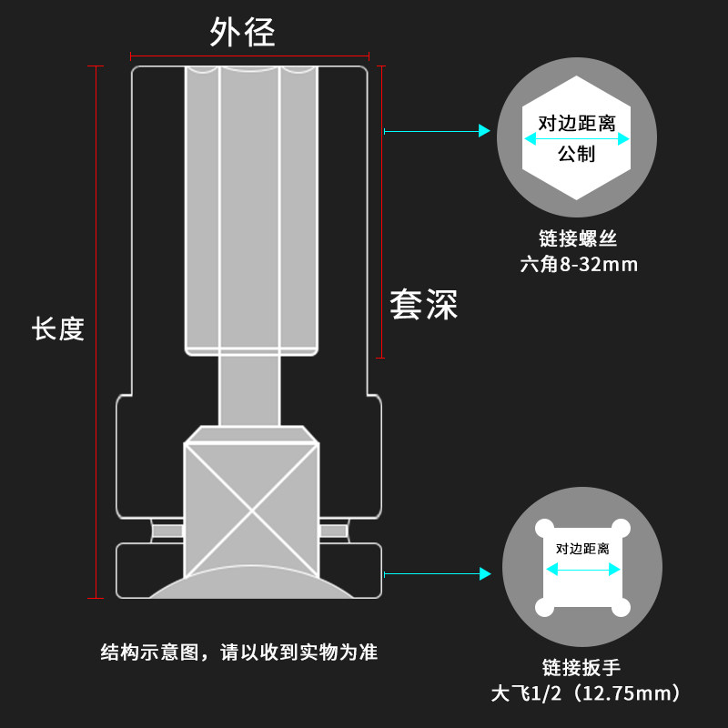Lengthened electric screwdriver sleeve set screw nut electric drill inner hexagonal pneumatic wrench sleeve head 8-32mm