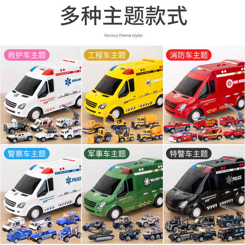 Ambulance (large sound and light) + 6 alloy ambulance + road sign Fire truck (large sound and light) + 6 alloy fire truck + road sign Engineering vehicle (large sound and light) + 6 alloy engineering vehicle + road sign SWAT car (large sound and light) + 6 alloy special police car + road sign Police car (large sound and light) + 6 alloy public security car + road sign Military vehicle (large sound and light) + 6 alloy military vehicle + road sign Ambulance (large sound and light) + 12 alloy car (ambulance + car) + road sign Fire truck (large sound and light) + 12 alloy car (fire + car) + road sign Engineering vehicle (large sound and light) + 12 alloy car (engineering + car) + road signs SPECIAL police car (large sound and light) + 12 alloy cars (special police + cars) + road signs Police cars (large sound and light) + 12 alloy cars (police + cars) + road signs Military cars (large sound and light) + 12 alloy cars (military + cars) + road signs