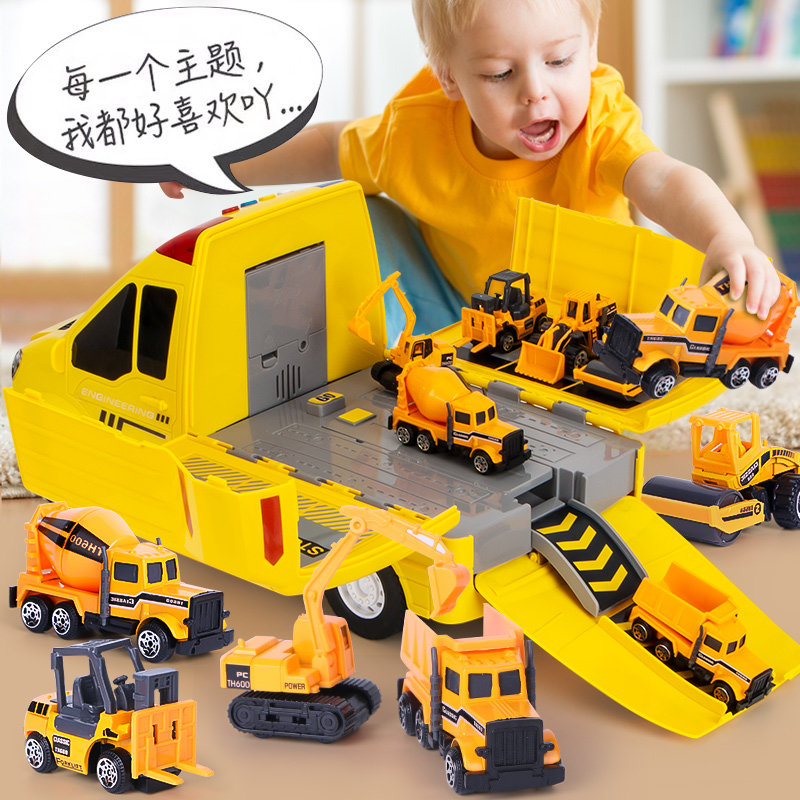 Engineering vehicle (large sound and light) + 12 alloy vehicle (engineering + automobile) + road signs