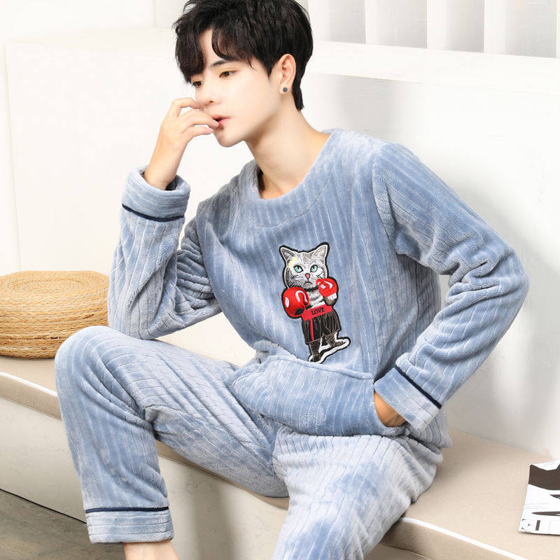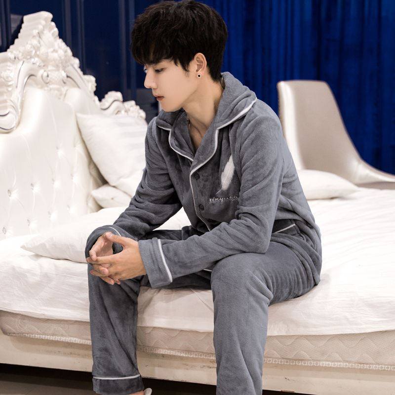 Pellet composite pajamas in Japanese coral milk velvet autumn winter three husky sand lake