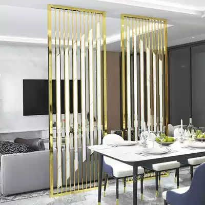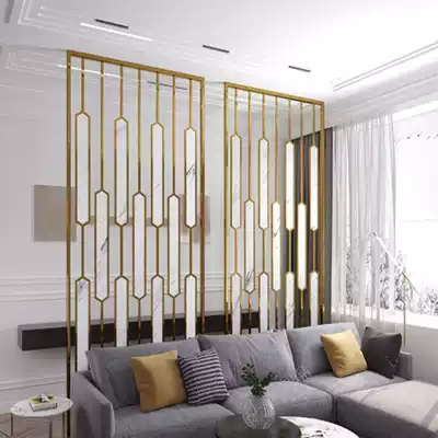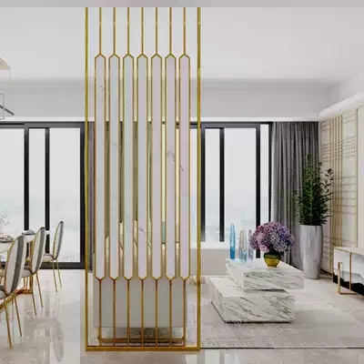 Stainless steel screen partition custom living room hotel modern simple light luxury flower grid hollow carved metal porch