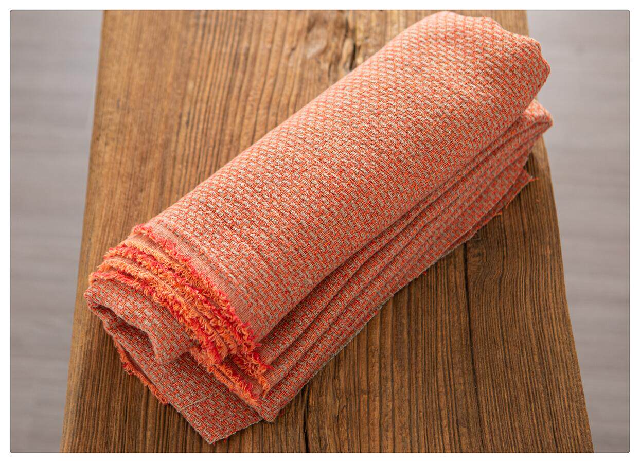Remaining fabric of order Thick weave style hemp linen yarn dyed fabric door panel rock red