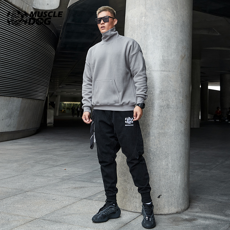 Muscle dog sports leisure thick cotton T men 2020 autumn and winter plus velvet trend high collar training clothes fitness clothes pullover