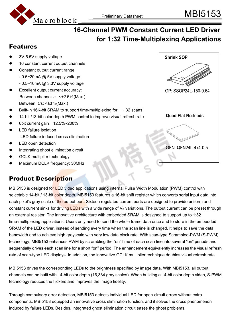 MBI5153GP-A Package SSOP24 MBI Taiwan Aggregate LED display drive IC chip