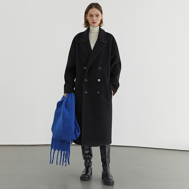 Fanlow 2022 Winter's new black Herbenwind double-row buckle thickened with long version of the fur coat jacket woman