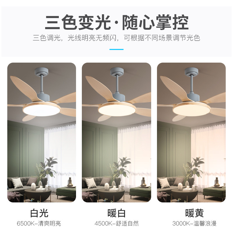 46-635A three-leaf white ceiling wood grain leaf + light changing remote control