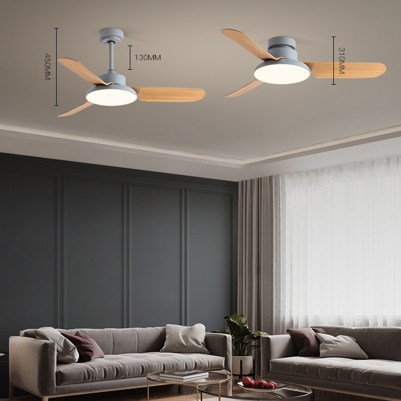 46-635A three-leaf gray ceiling wood grain leaf + variable light remote control
