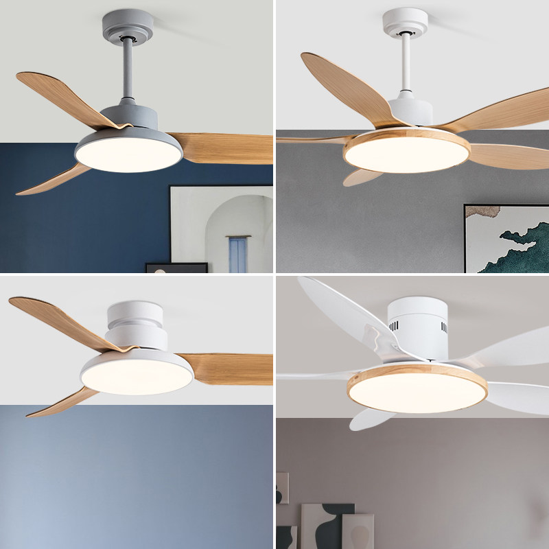56-635B five-leaf white ceiling wood grain leaf + wood grain cover + variable light remote control