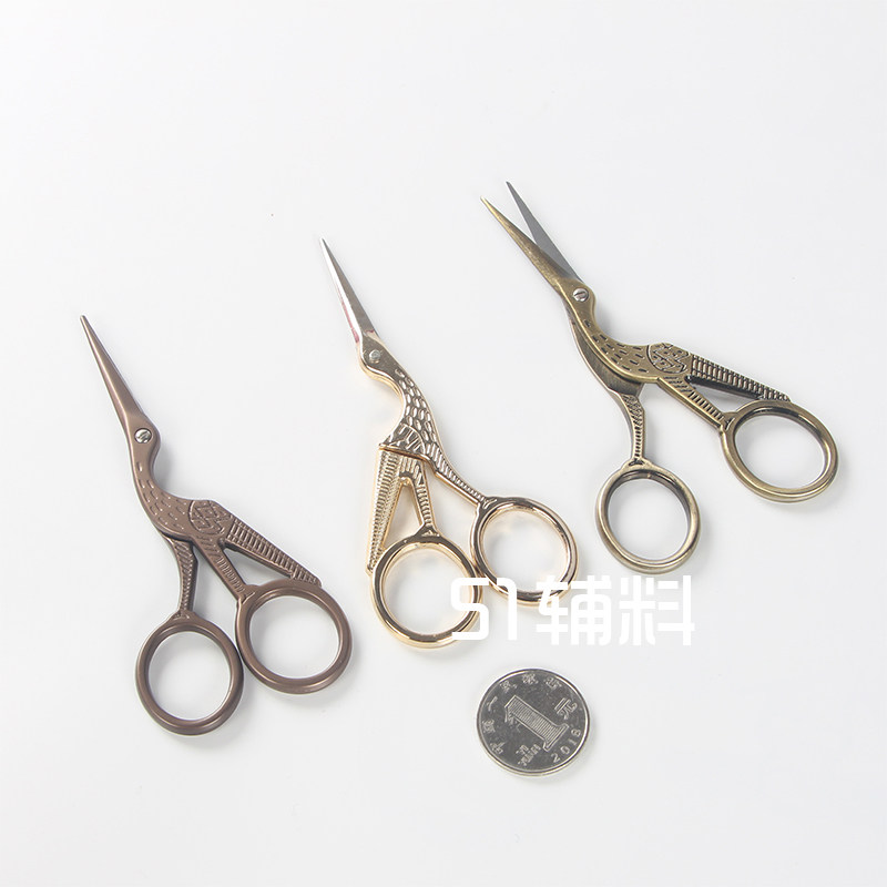 Cloth Art DIY handmade retro cut cranes Scissors Small Crane Cut yarn Scissors Tea Cut Cross Embroidered Wire Head Cut