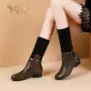 Boots women's boots 2020 new autumn and winter leather thin mid-tube boots thick medium heel Martin boots wool tube thin boots