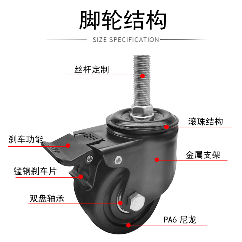 M20 Low Heavy Wire Rod Wheel Mechanical Foot Wheels Nylon Load-bearing Day Style Denim and Filament Rod Set to brake