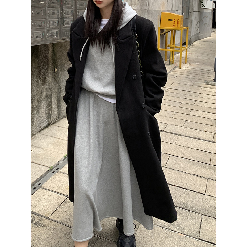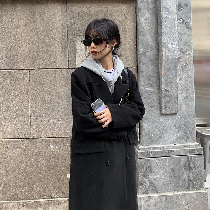 Coat women 2021 new medium and long version of spring and autumn temperament windbreaker black Hepburn wind coat women