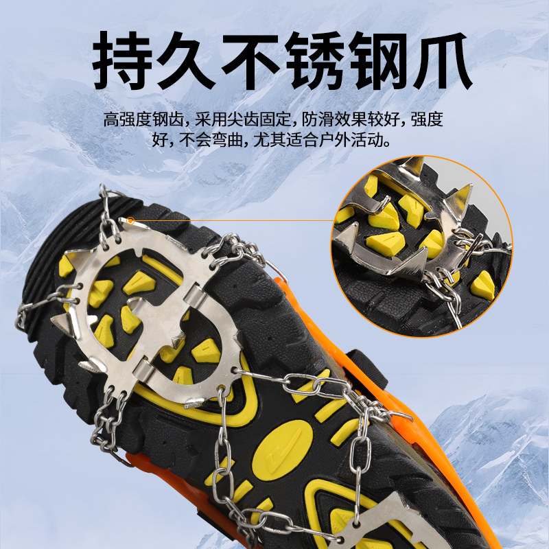 Kuangtu outdoor 13-tooth simple crampon anti-slip shoe cover mountaineering snow claw stainless steel spike shoe chain climbing equipment professional
