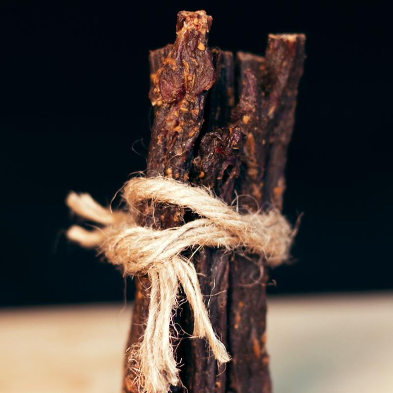 The beef jerky is dry.