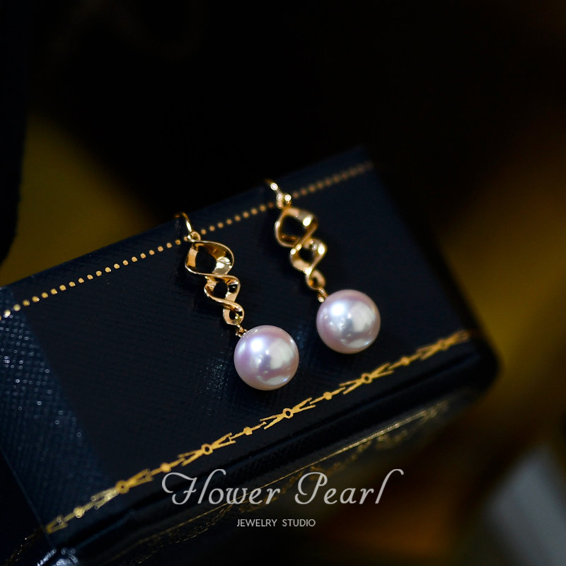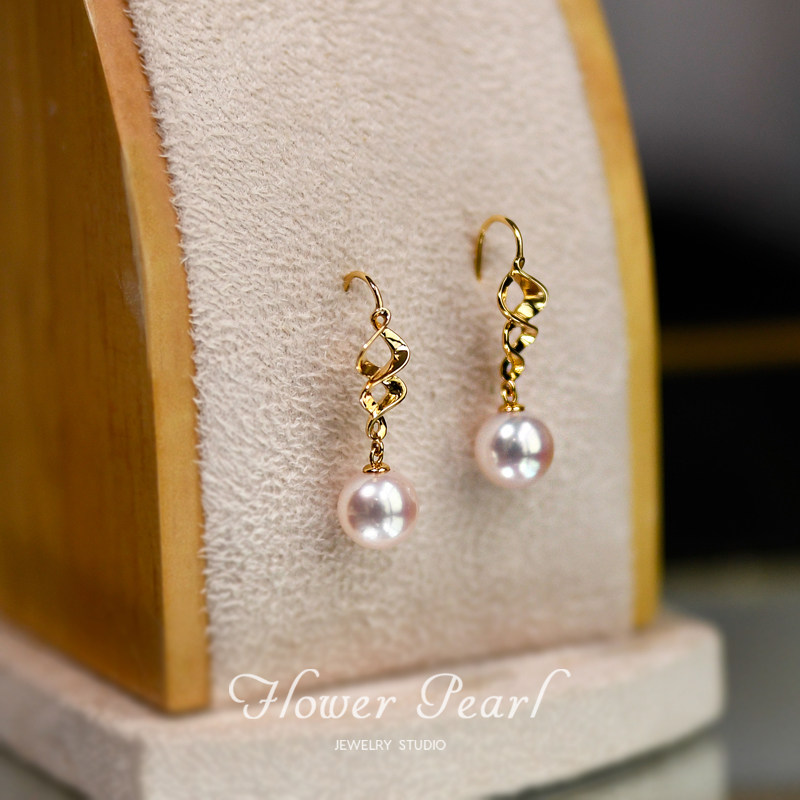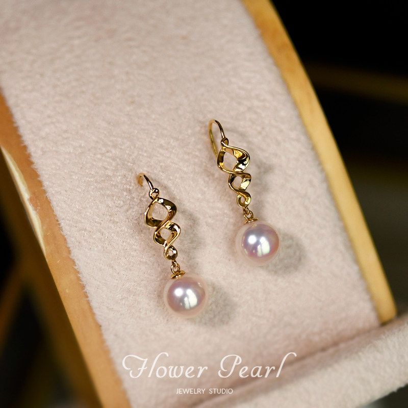 Dependent Love Japanese Aurora Akoya Natural Seawater Pearl 18K Yellow Gold Twisted Flower Earrings Earrings Earrings Earrings Earrings