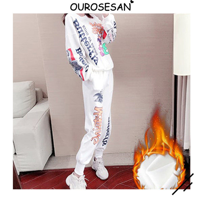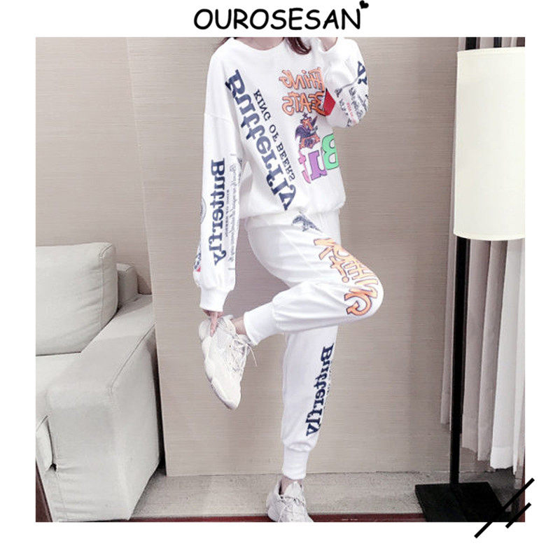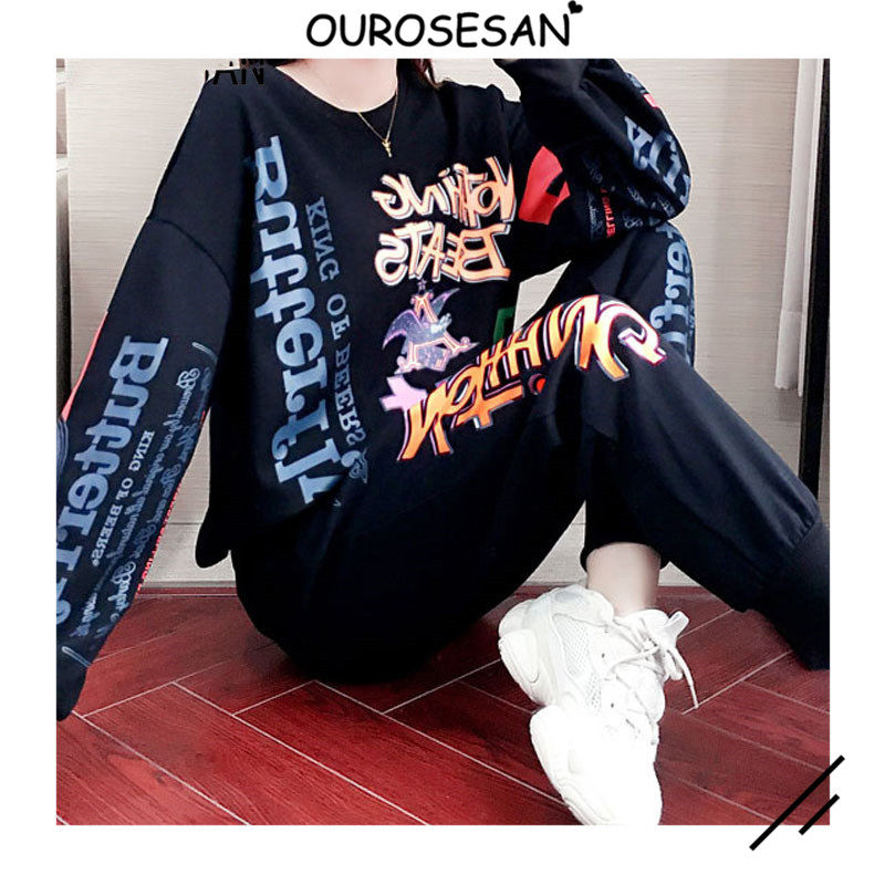 OUROSESAN SPORTS CASUAL SUIT WOMEN SPRING AUTUMN SEASON STYLE Fashion Long Sleeves Thick Cotton T Loose wave Two sets