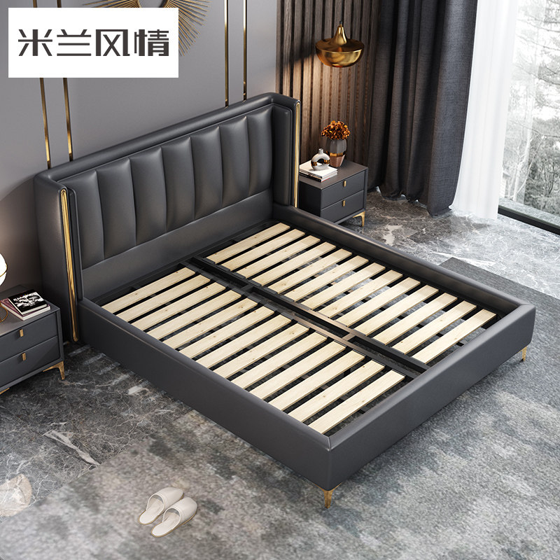 Hong Kong-style light luxury bed post-modern 1 8 meters leather bed master bedroom double leather bed simple small apartment bed leather art marriage bed