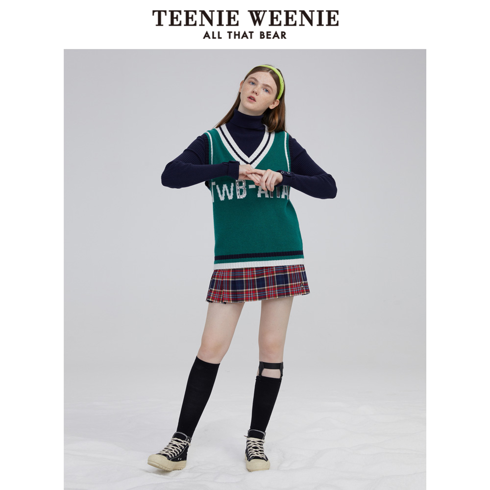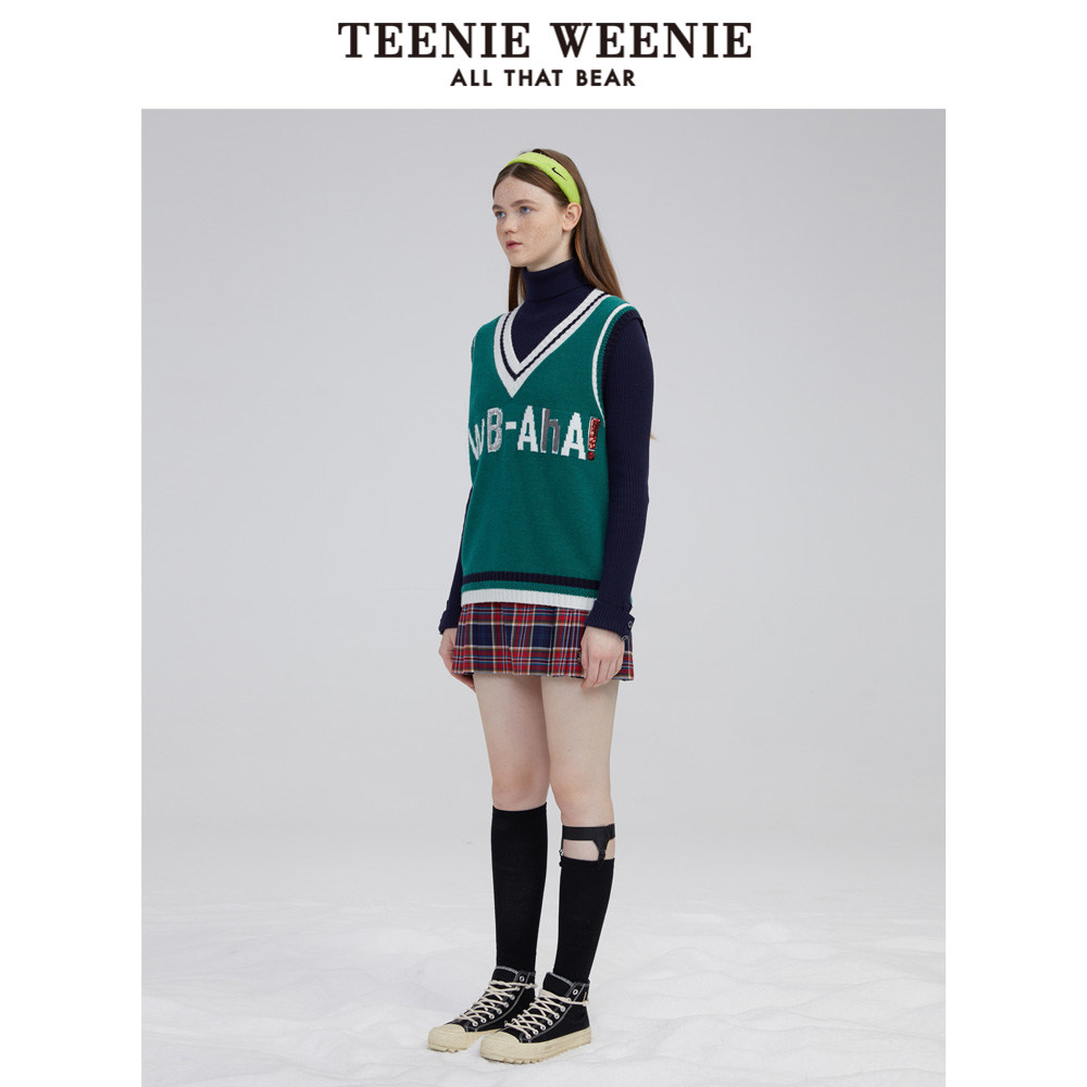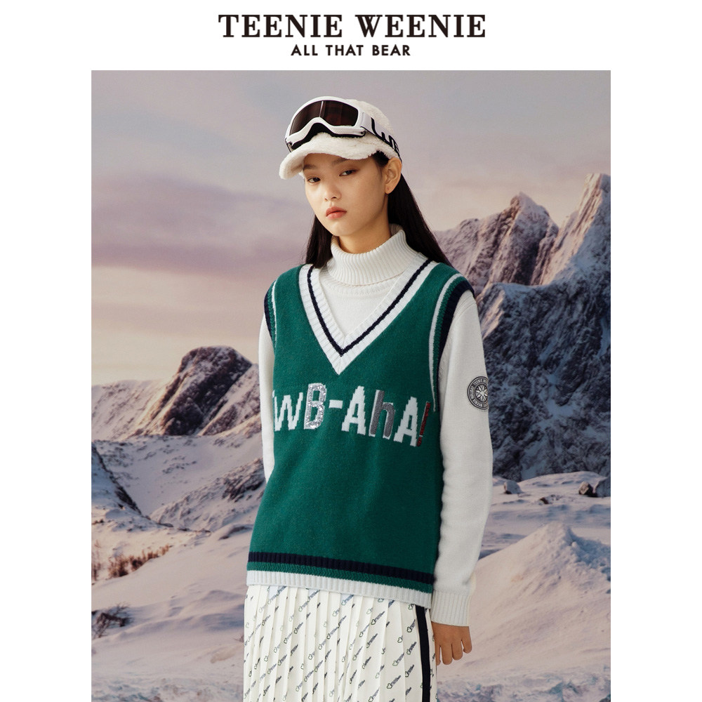 TeenieWeenie Cubs V collar knit cardiovert jacket headsets waistcoat jacket outside wearing loose and lazy female winter style