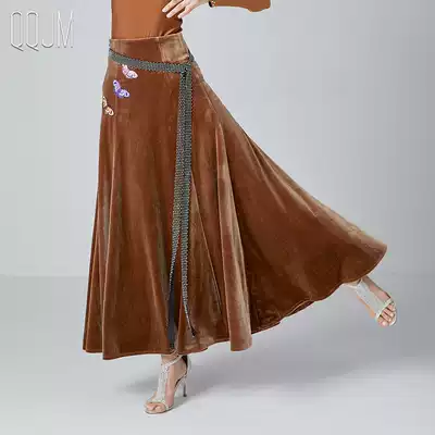 Modern dance dress skirt gold velvet 2021 autumn and winter new dance skirt temperament diamond belt hanging small skirt