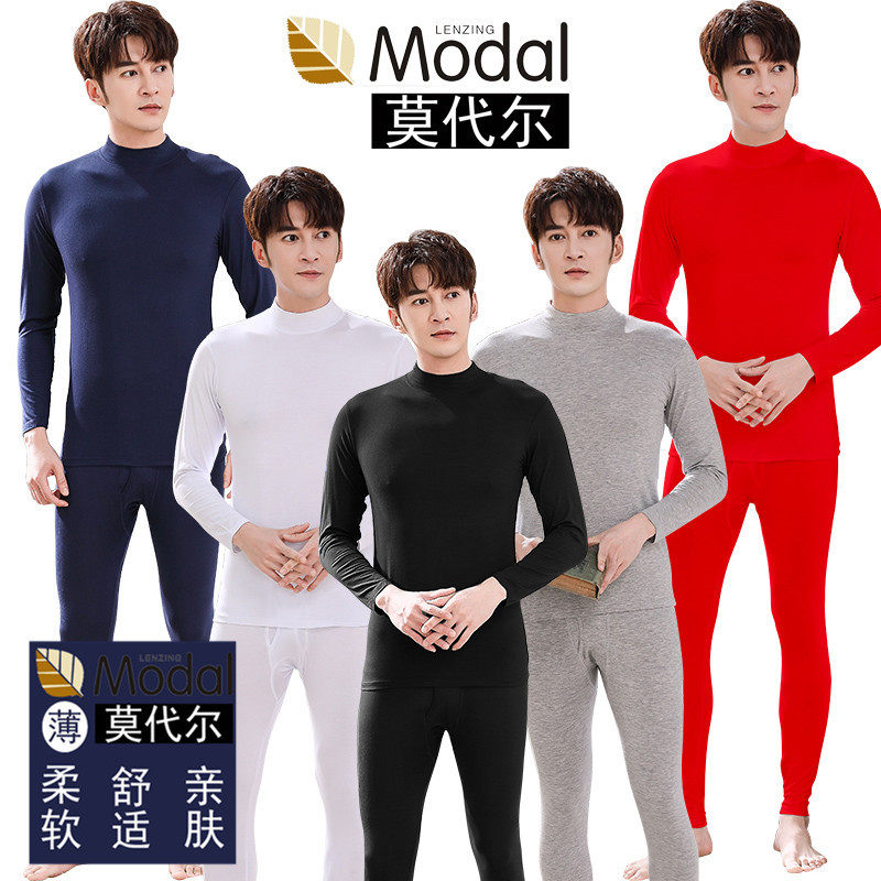 Autumn Winter Male Modale Half High Collar Autumn Clothes Sanitary Pants Thin style Sweater Undershirt Sanitary Dress Sanitary Pants